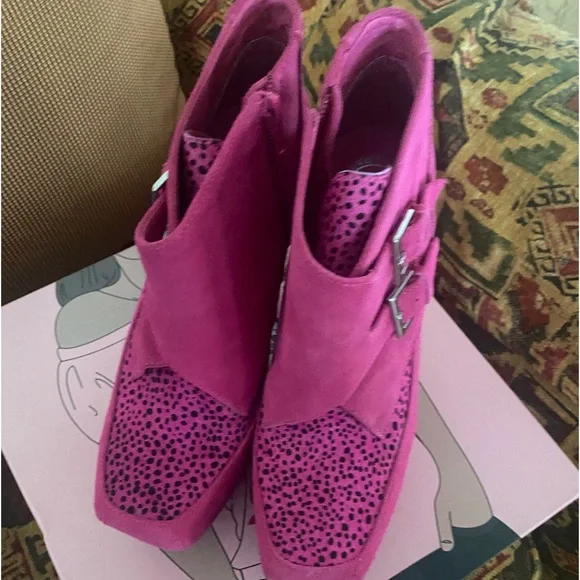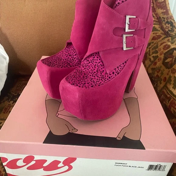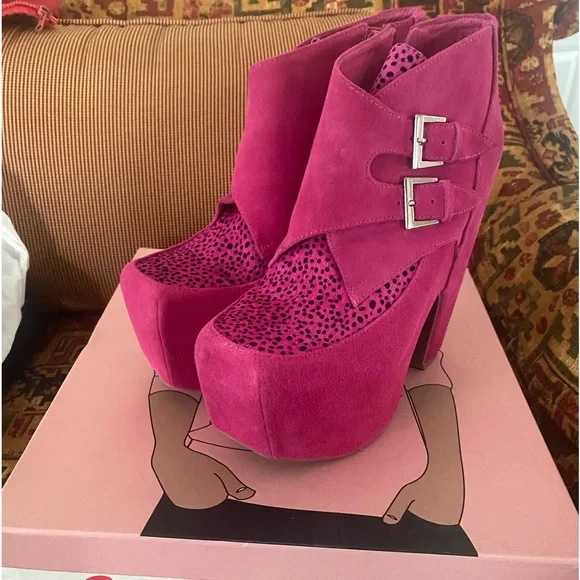 Jeffrey Campbell Warrant Fuchsia Platform Booties (8) BARBIE Pink