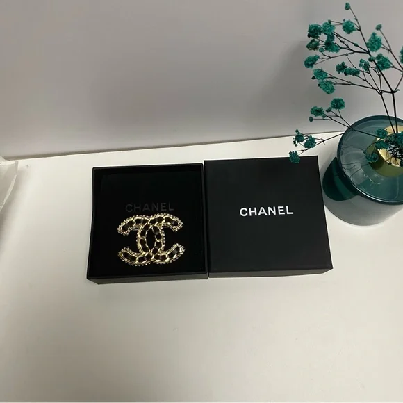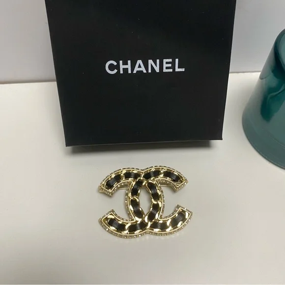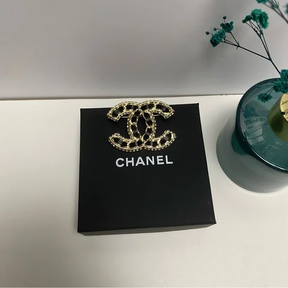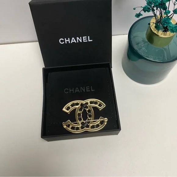 This exquisite brooch showcases the iconic interlocking CC logo, crafted in a sleek black finish. Its elegant design embodies the timeless sophistication synonymous with the brand. A perfect accessory to add a touch of luxury to any ensemble.