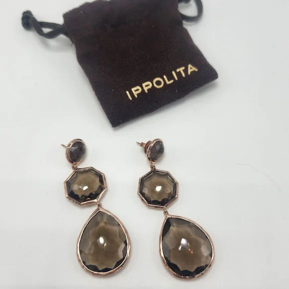 Ippolita Smoky Quartz & Rose Gold Drop Earrings Like New in pouchRetail $8952.5" in lengthPost backingPlease see photos for more details