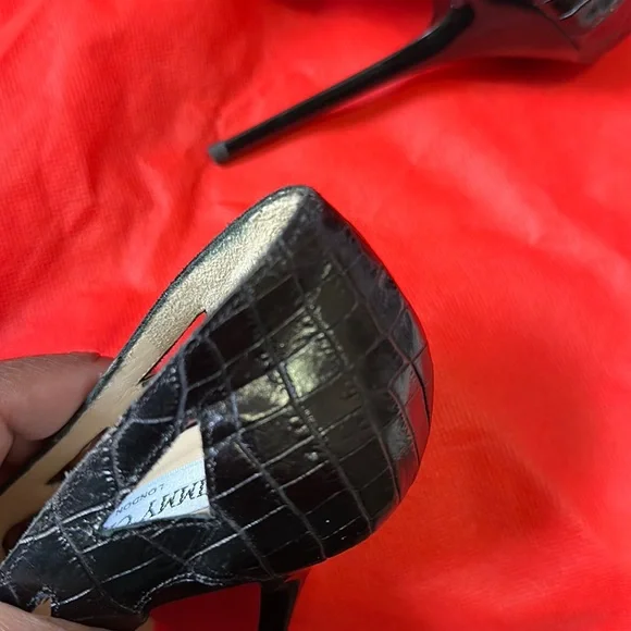 Jimmy Choo Black Croc Embossed Leather Eternal Cut Out Pumps