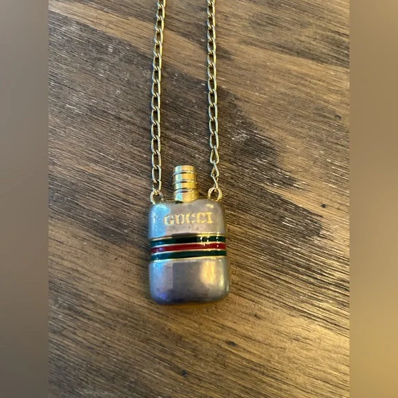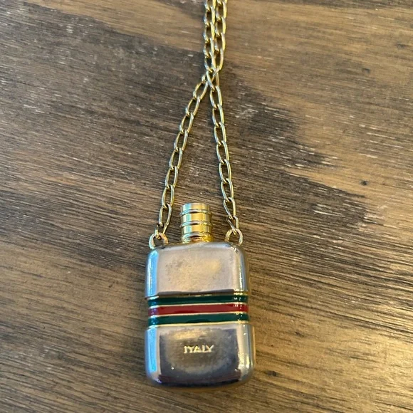 Vintage Perfume Bottle Necklace Red Green Classic Chain