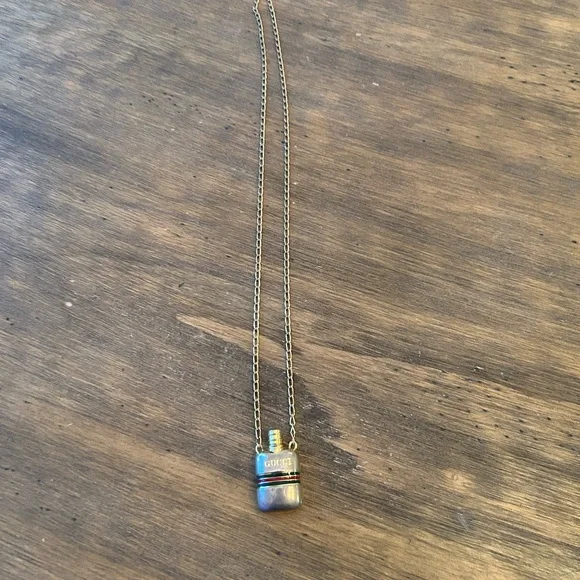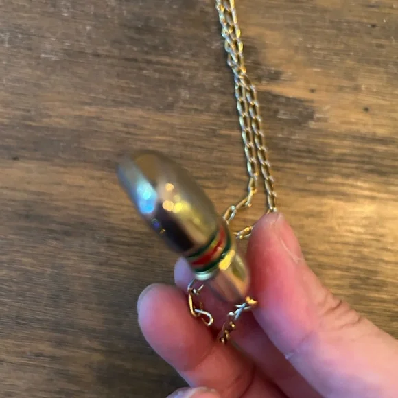Vintage Perfume Bottle Necklace Red Green Classic Chain Has tarnish consistent with age Vintage and bottle top can be removed