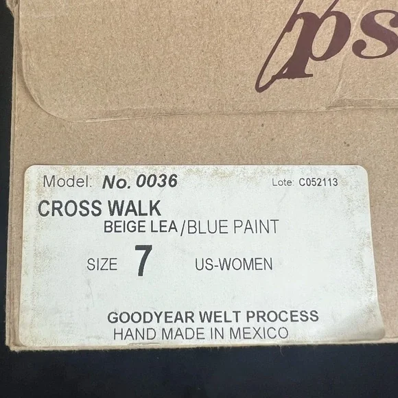 Model No. 0036 Original Release Never WornNew in box Beige Leather/ blue Size 7 Goodyear Welt Process Handmade in Mexico By Paul KaufmanWww.pskaufman.com