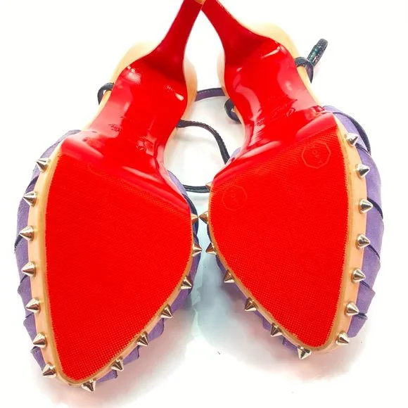 Reposhing this item I purchased from @fashion_victim9. Love them, but unfortunately discovered that I am a 39. They are naturally even more beautiful in person!! Can dress them up in a feminine purple or nude dress or dress them down with jeans and a black T for a more casual and cool girl look. Helpful sizing tip: I am a normal size 8 with a fairly narrow foot and need to size up in Red Bottoms moving forward. Questions? Leave a comment below!Comes with original dust bag and freshly re-soled by a high-end shoe cobbler. Helps with slipping on tile or slick wood floor!