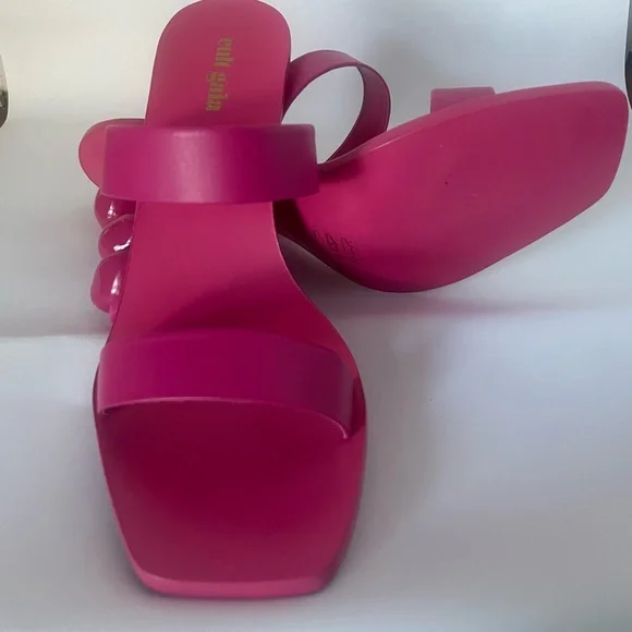 heel sandals in hot pink comes in the original box and dust bag. Brand new
