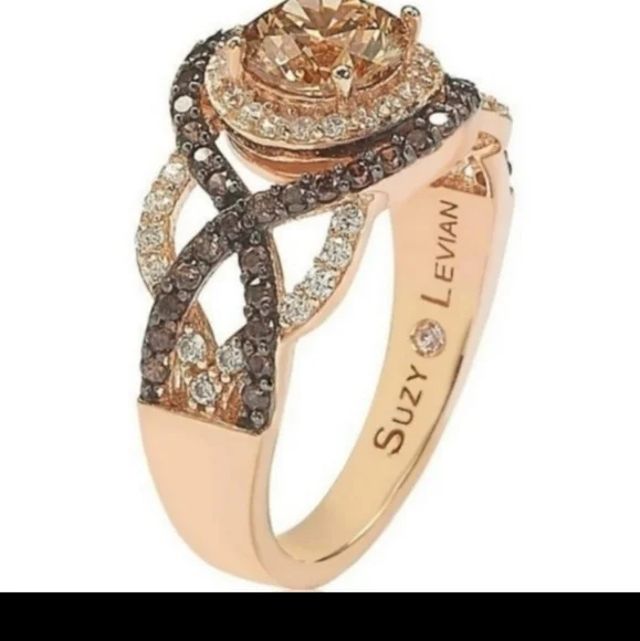 Show stopping Suzy Levian chocolatechampagne and Vanilla simulated Diamond Ring.2.64 carats Brilliant cut simulated DiamondsFIRE AND ICE Chocolate champagne vanilla simulatedDiamondsRose gold platedHALLMARK FINE .925 sterling silver HALLMARK STAMPED SUZY LEVIANSizes 5-9 avilable please message after purchase to let me know size thank you.Reasonable offers welcomeOriginally priced $398.00 in stores.