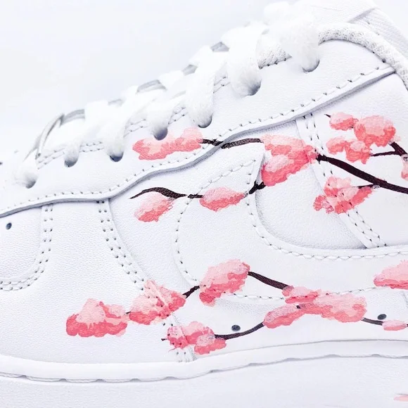 Brand new in original box Custom made to order Cherry Blossom Design on exterior Youth sizes converted to womens Select size in womens shoes