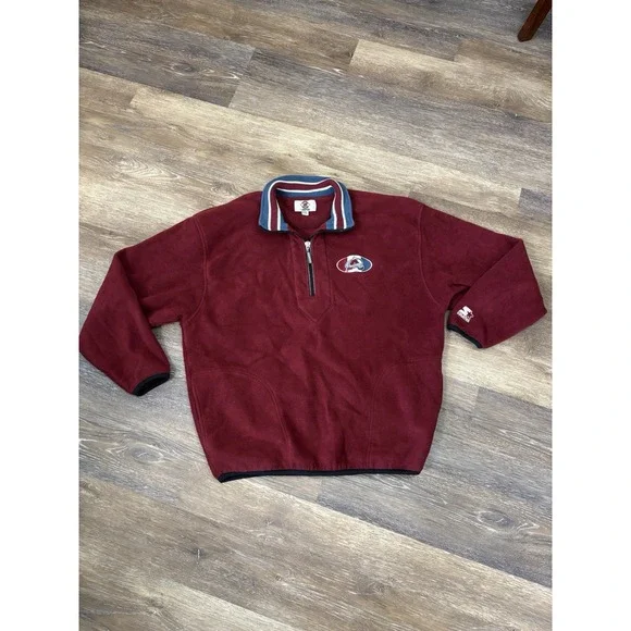 The Vintage 90s Starter Colorado Avalanche NHL Fleece Pullover Quarter 1/4 Zip Jacket is a stylish and nostalgic piece of clothing perfect for fans of the Colorado Avalanche. Made...
