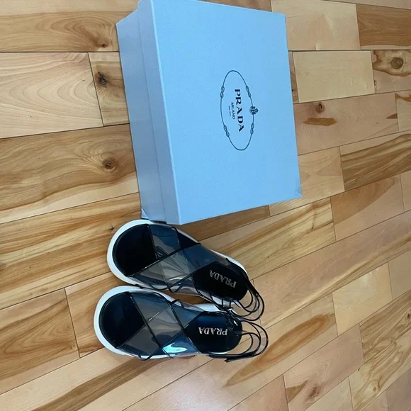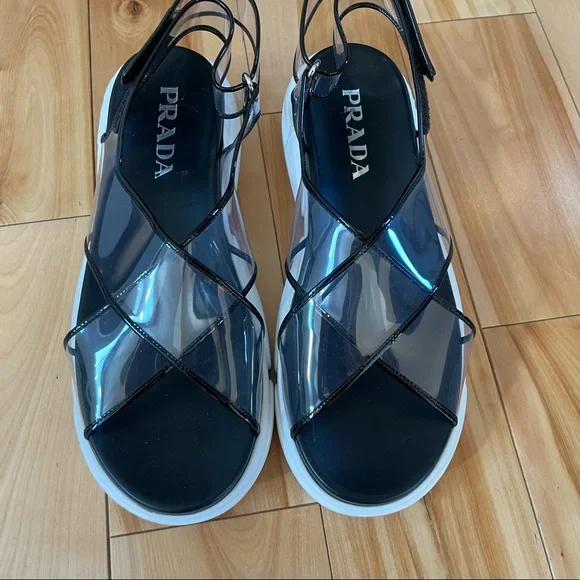 PRADA SANDALS WOMEN PLEXIGLASS TRANSPARENT BLACK