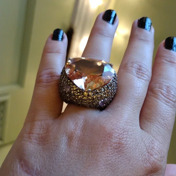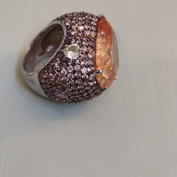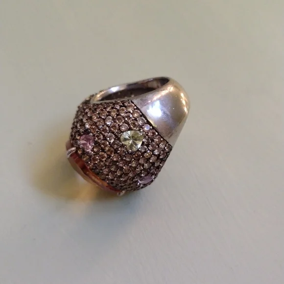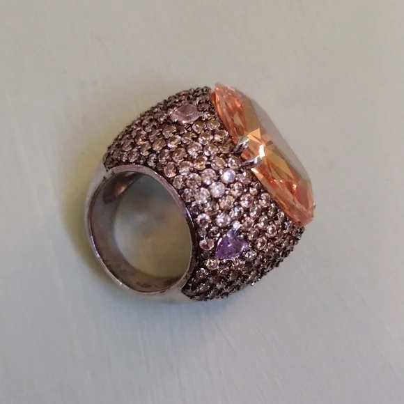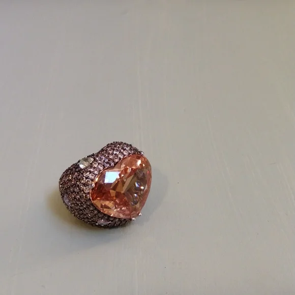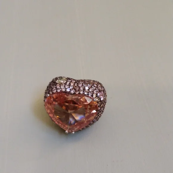 Purchased from KITSON boutique in Los Angeles, CA. Beautiful peachy amber heart-stone surrounded by champagne rhinestones with pastel mini hearts scattered amongst them.