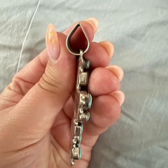 Beautiful cross pendant with turquoise stones. Unique design with silver accents. This is a show stopper!