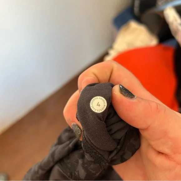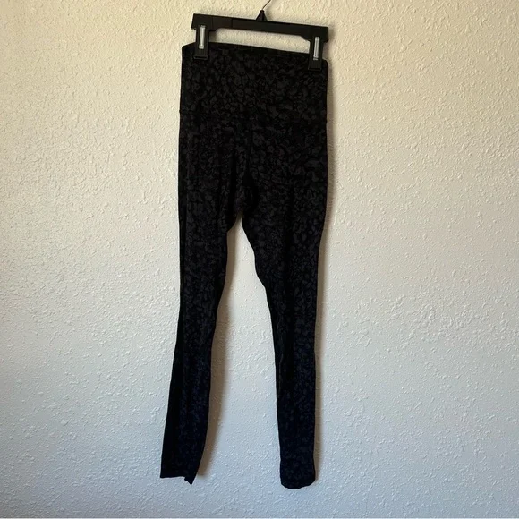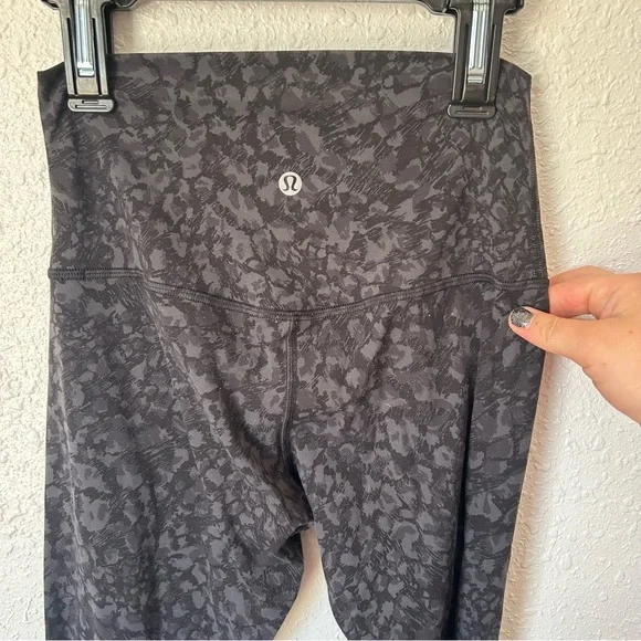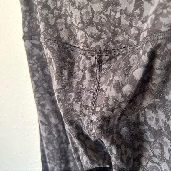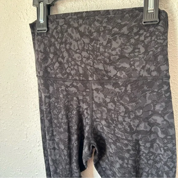 Nulu fabric.28" inseam. High waisted. Shows some signs of wear on backside but not too bad, see pics for details. Size 4.Wild thing camo deep coal multi is the color way. It´s like a geometric grey and black camo.
