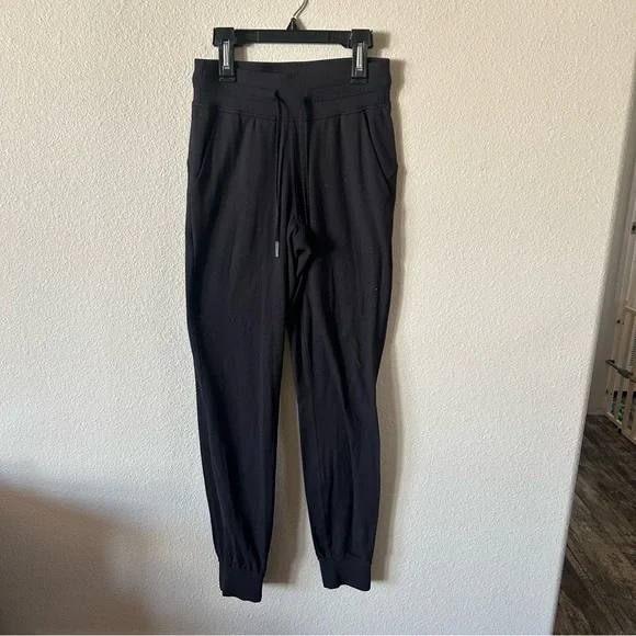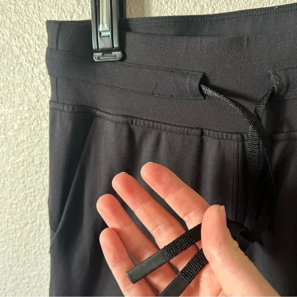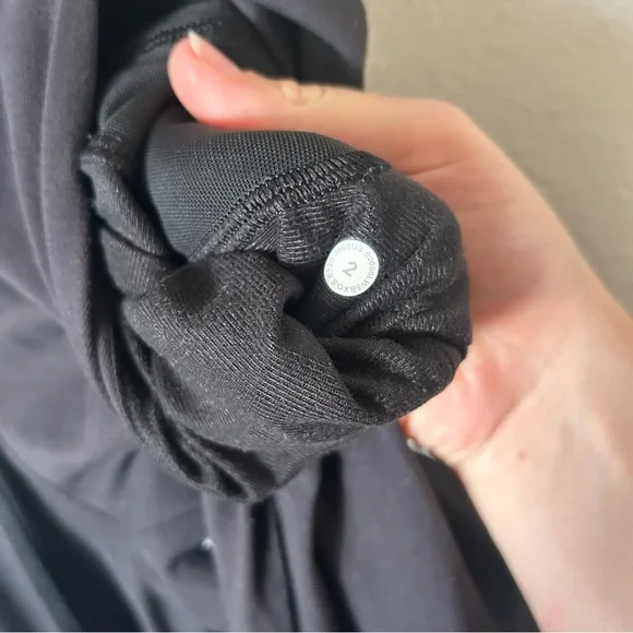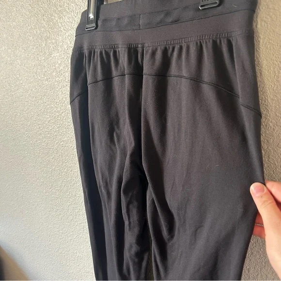 High rise fit with front drawstring. Super stretchy and soft fabric. Black. Size 2.Good condition, some minor pilling.