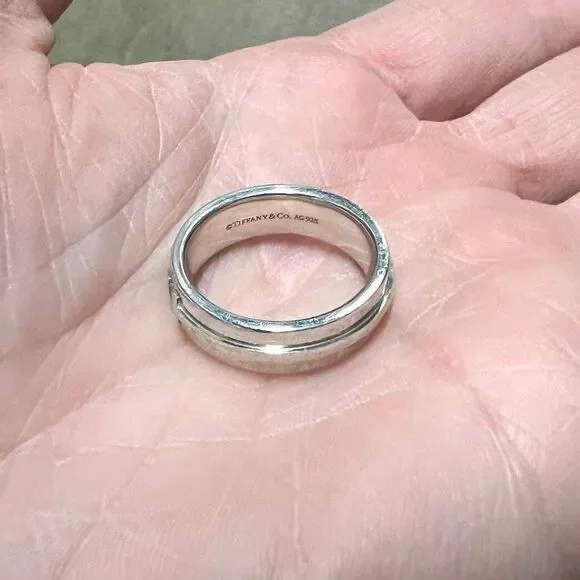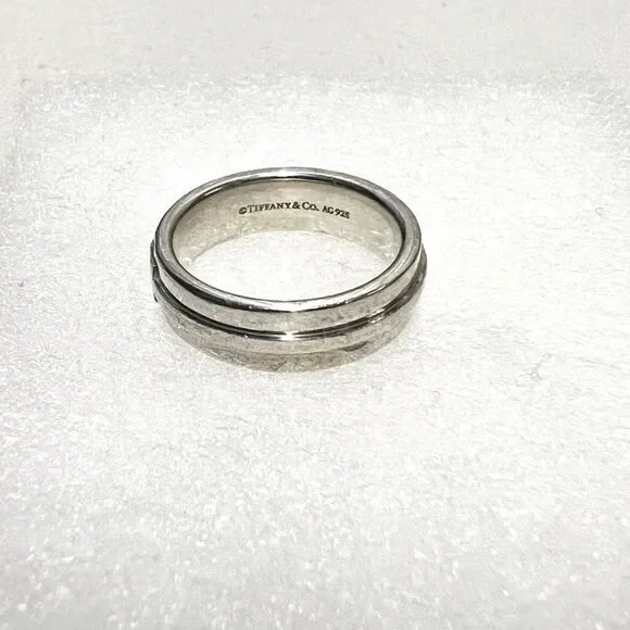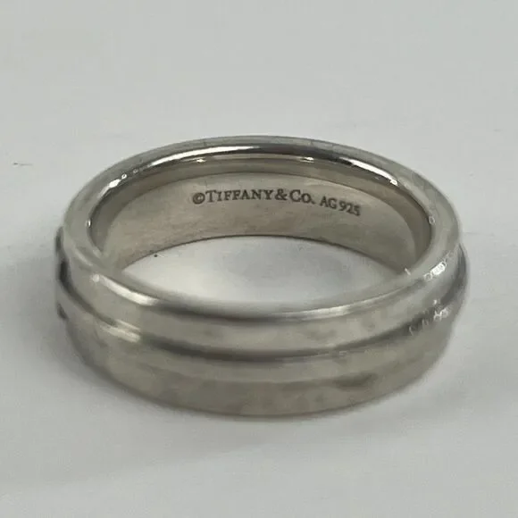 MODEL TITLE - Tiffany & Co. Sterling Silver Band 7.5CONDITION - Exceptional! Notable condition details: Light scuffing.SKU - 6416STYLE TYPE - Silver BandDIMENSIONS - L0.8 x H0.8 x W0.2MATERIAL - Sterling SilverCOMES WITH - Box and Dust Bag