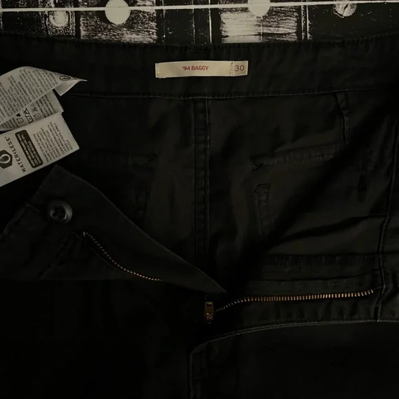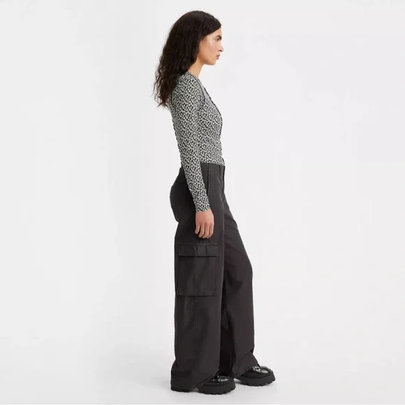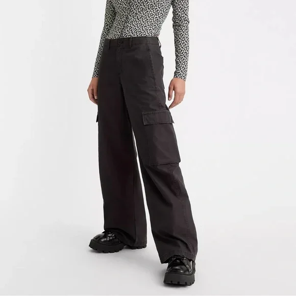 EUCExcellent Used ConditionLevi’sBaggy Cargo PantsColor: Meteorite - BlackSize: 30A little grungy, a little ´90s and a whole lotta style. With a flattering mid rise and a loose, relaxed fit, our Baggy Cargo pants are inspired by beloved vintage cargos with just the right amount of bagginess for everyday wear. The best part? Their oversized pockets are perfect for stashing your keys, phone—you name it.A little grungy, a little ´90sA flattering mid riseCut with a relaxed, baggy fitFeatures a wide legFinished with oversized patch pocketsHow it Fits:Loose Through The Hip And ThighMid rise: 11"Inseam: 29”Model is 5´9" with a 25" waist wearing a size 25" x 30"100% cottonTwillNon-stretchZip flyUtility pocketsMachine wash coldDo not bleachTumble dry mediumHot iron if neededDry cleaning possibleWash inside out with like colors