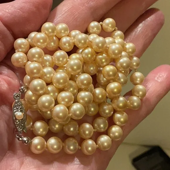 This stunning gold pearl necklace adds a touch of elegance,vintage gold pearl Shine very beautiful lock clasp.