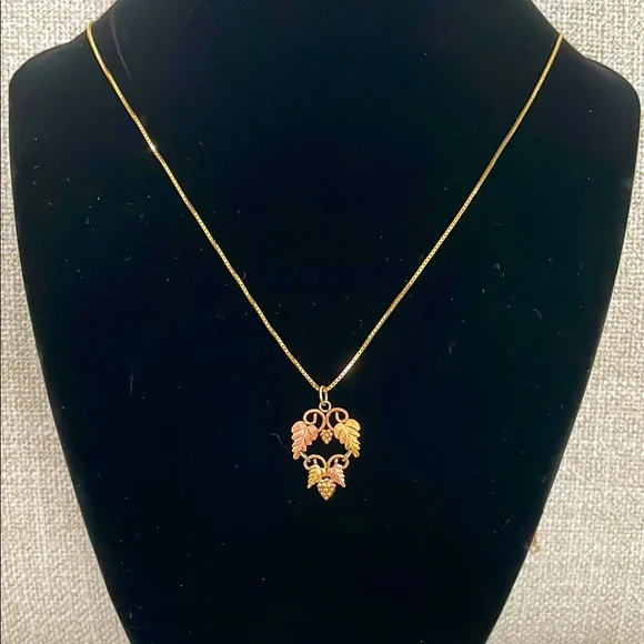 Vintage 14k gold chain with a 10k leaf pendant. Coleman Co. The chain is an incredible 24 inches long.