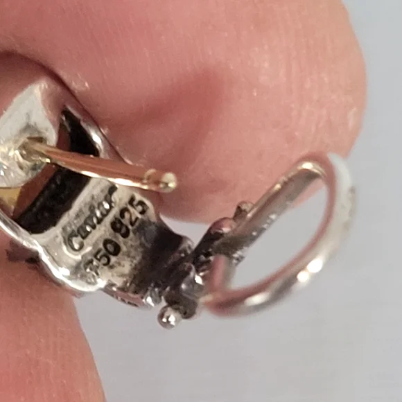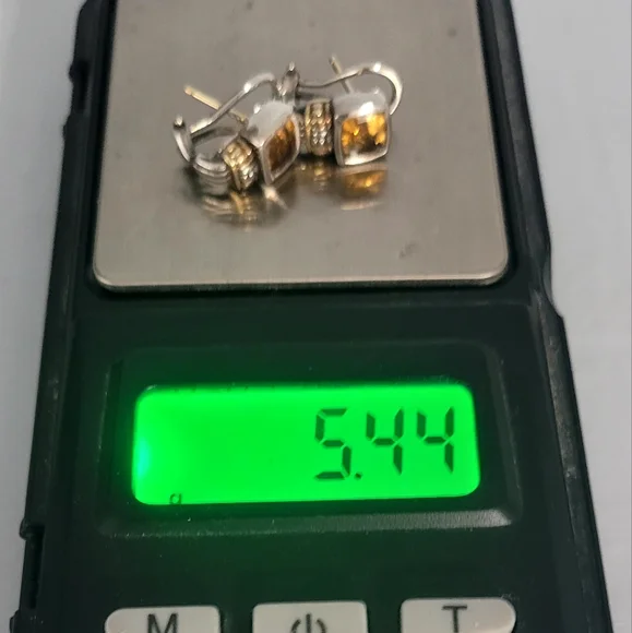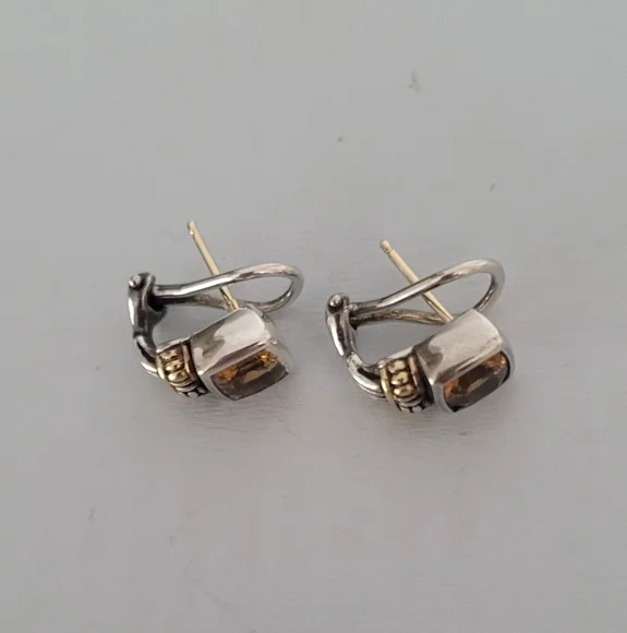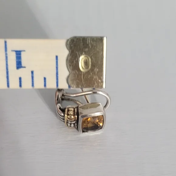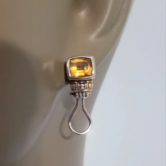 Sterling Silver 18K Yellow Gold Warm Yellow Citrine Stone 0.5" drop length 14K Gold post with leverbackMarked 750 925 CaviarVery good vintage condition
