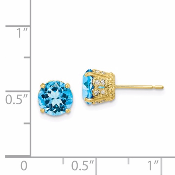 10K Polished Diamond Sky Blue Topaz Post EarringsLength of Item:7 mmWidth of Item:7 mmEarring Closure:Post & Push Back
