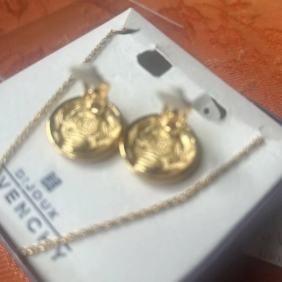 GIVENCHY Vintage, new inbox, gold earrings and necklace set.