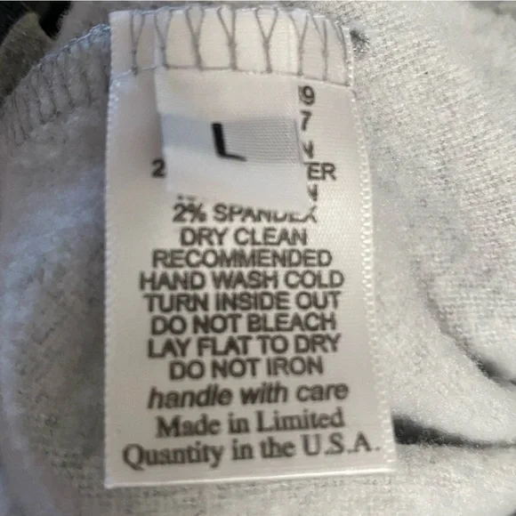 Sold Out Online• MADE in LOS ANGELES• 62% Rayon 23% Poly 13% Cotton 2% Spandex• Dry Clean Recommended• Ultra Soft Fleece Knit Fabric• Screen Print Graphics• Elasticized Waistband w/ Interior Drawstring• Elasticized Leg Openings• Stretch Fit