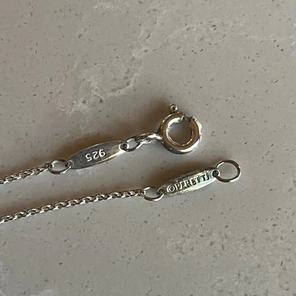 Discover the timeless elegance of the Tiffany & Co Elsa Peretti Silver Teardrop Necklace, a stunning piece that embodies sophistication and style. Like new15.5” approximate chain lengthGenuine 925 silverMarked as shown in photos