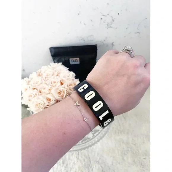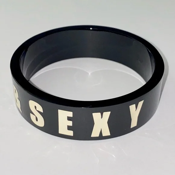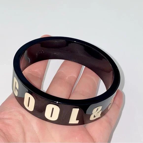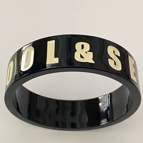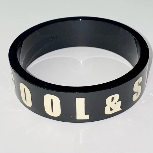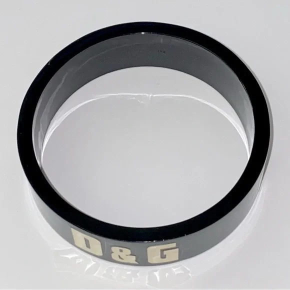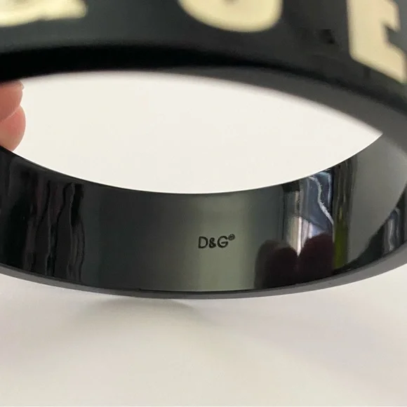 Authentic Vintage 2003 Dolce & Gabbana “Cool & Sexy D& G” Black Shiny Bangle Bracelet with Off White Enamel Logo. Measures: 8” Around the Inside.