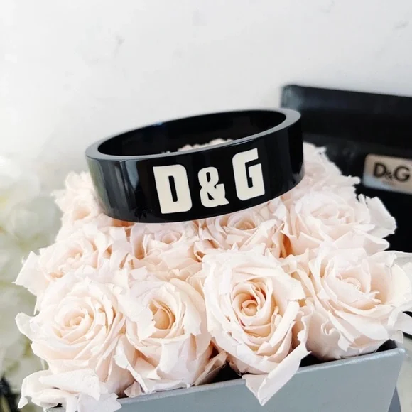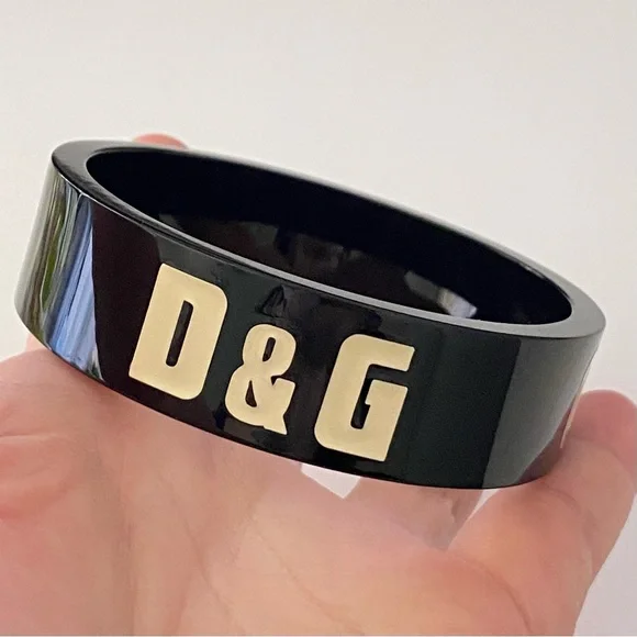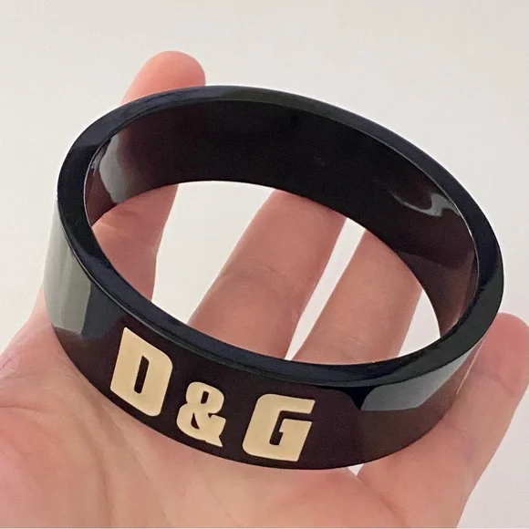 AUTH VTG Y2k Dolce & Gabbana Cool & Sexy Black D&G Logo Bangle Bracelet