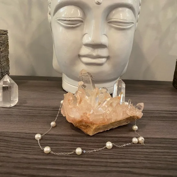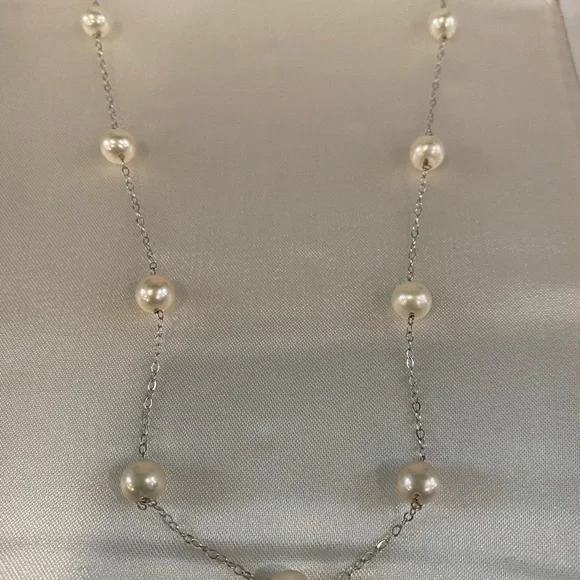 White gold and pearl necklace.Never worn.Box included. 18 inches