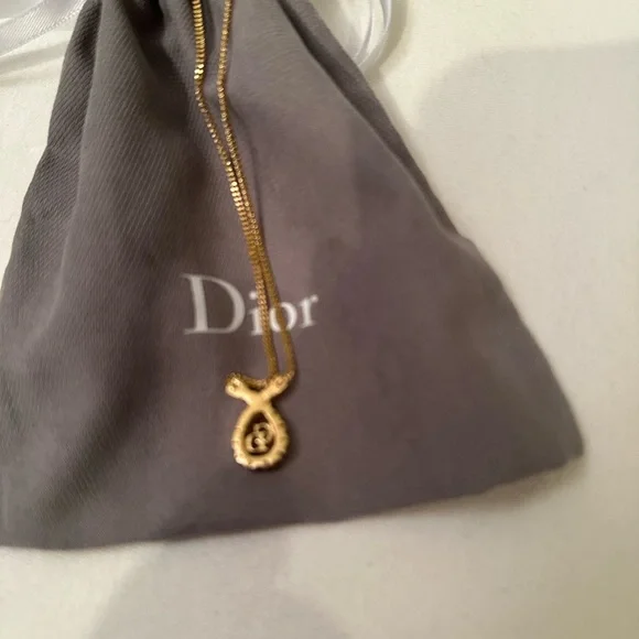 Dior authentic crystal gold tone necklace in EUC with Dior bag.