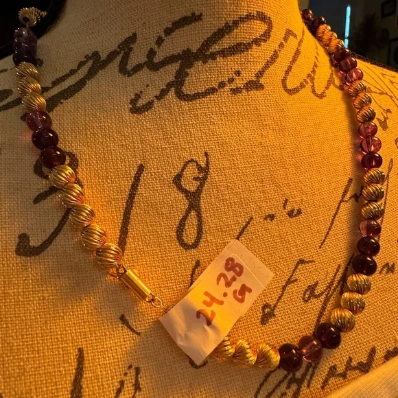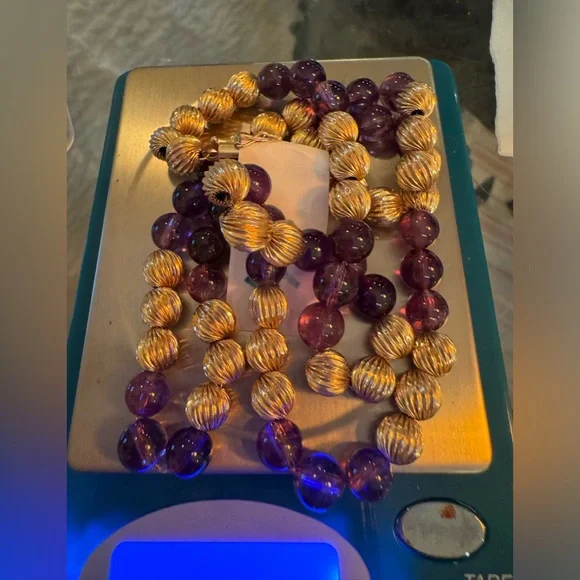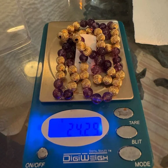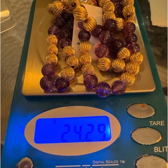 24.29g of 14 k gold and amethyst balls! Necklace!