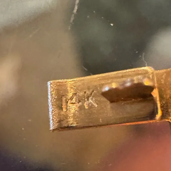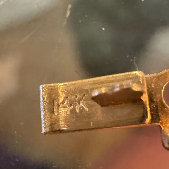Is stamped 14k hollow gold balls on gold chain with solid amethyst balls! Beautiful unique piece!