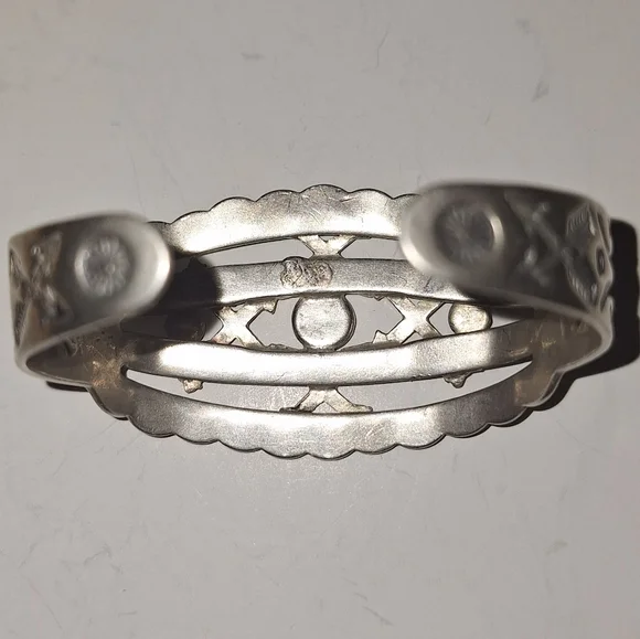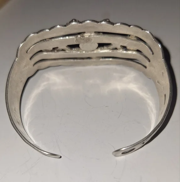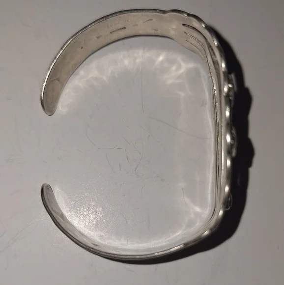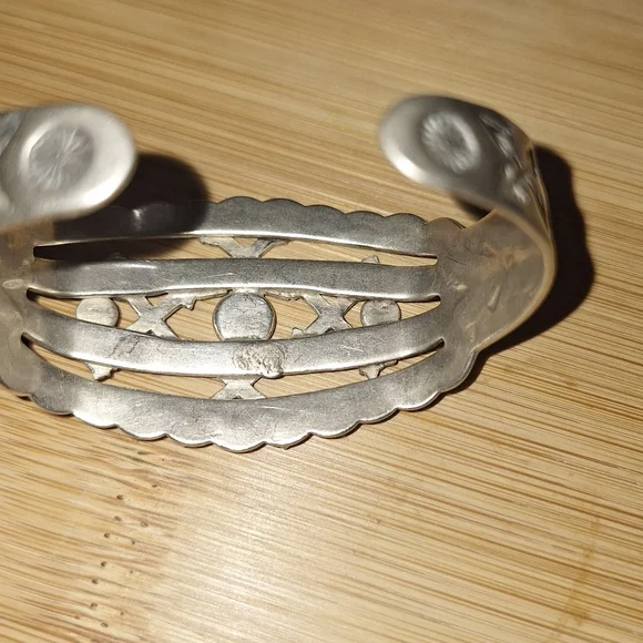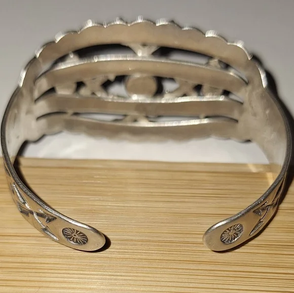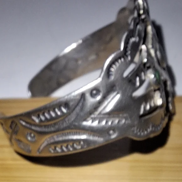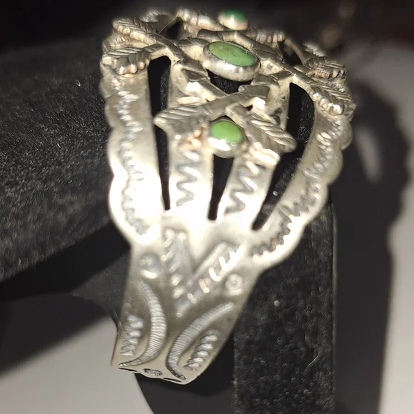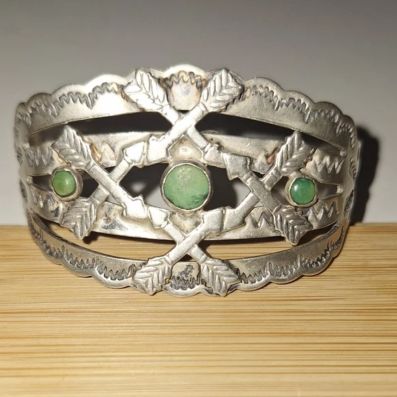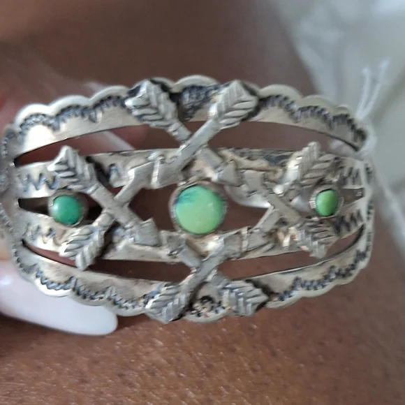 Early Fred Harvey Era Native American Sterling Silver Turquoise Cuff BraceletMinor wear from age minor scratches