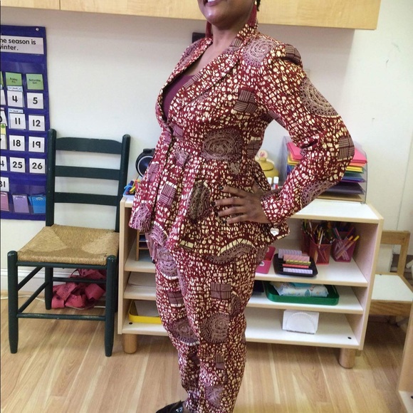 Burgundy & Cream Ankara Fabric Pant Suit Size 10 African Print, African Fashion, African Print Blazer and Pants