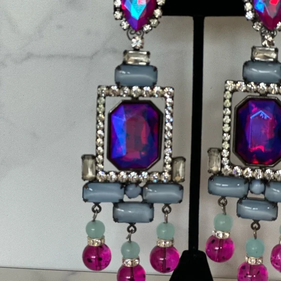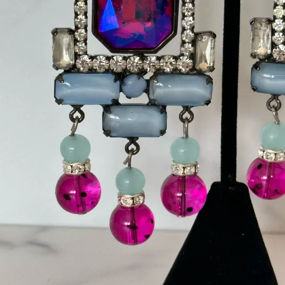 One of a kind, Larry Vrba EarringsClip-on closure Fuchsia/pink/blue tones with crystal elementsLawrence Vrba signed in back Measure 5 inches in length and 1.5 inches in width