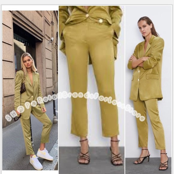 ZARA SATIN FINISH TROUSERS**Blazer Jacket available on another listing in our store,if you are interested on Set. **This listing is just for trousersBrand: ZARASize: MediumNew With TagsZARA Loose-fitting mid waist trousers. Front pockets, false welt pockets in the back and belt loops at the waist. Metal hook, inside button and zipAll Items we sale are 100% Authentic