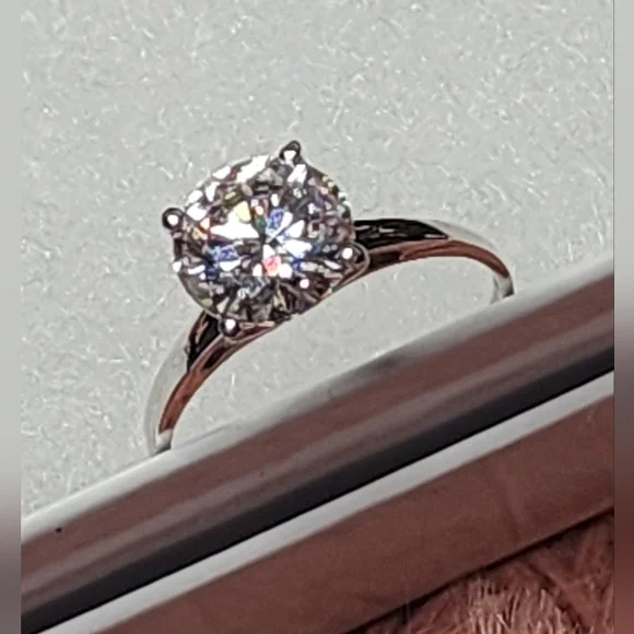 18K Moissanite Solitaire Ring 2.0ct Solid White Gold Size 6.5 K18 WG Japan NewResizeable Pawnable Stamped k18 wg 2.0