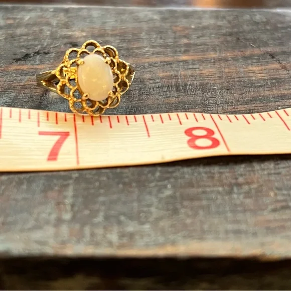 Oval Shaped Opal 14k Yellow Gold Ring Opal is slightly loose but still secure. Prongs can be tightened. Please see all images carefully for description and condition. Smoke and pet free home.