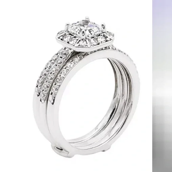 New With TagNever UsedCubic Zirconia Sterling Silver Engagement Ring and EnhancerCubic Zirconia Sterling Silver Engagement Style with EnhancerSquare HaloMetal Rhodium-plated...