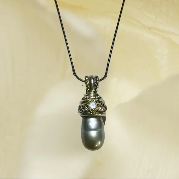 Judith Ripka Sterling Silver Gray Pearl Enhancer Pendant Necklace 18”.