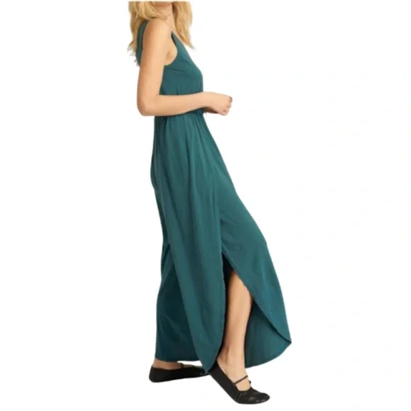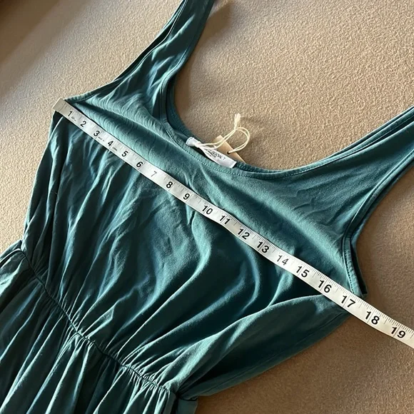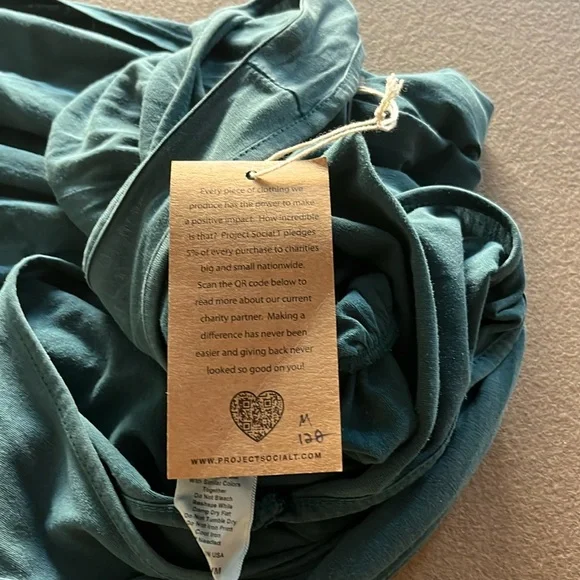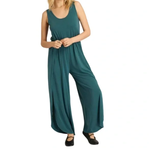 NEW PROJECT SOCIAL T Do it again scoop neck jumpsuit in teal- mediumExperience effortless style with the Do It Again Scoop Neck Jumpsuit by PROJECT SOCIAL T in a striking teal hue. This sleeveless piece showcases a relaxed fit with a high-rise elasticized waist, wide-leg cut, and a scoop neckline, made from a soft blend of 70% lyocell and 30% cotton.Designed with a pull-on closure, it features a curved hemline with side slits for added playfulness. Care instructions include machine washing cold, laying flat to dry