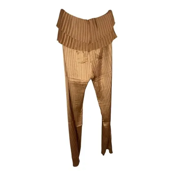 The Linea pants are those statement pants you can repeatedly count on. Designed with our signature pleated fabric, these pants feature a flattering 2- layer peplum and a comfortable wide leg. This piece mesmerizingly moves with you with each step as you float about your day.Wide legPleatedPeplum waistHigh rise95% Polyester, 5% SpandexCondition: New with tagsMSRP: $284Approximate measurements:Waist: 13"Rise: 14"Inseam: 34"Length: 48"Tags: casual, vacation, brunch, markets, concerts, festivals, dinner, nights out, fall, spring, summer, work, comfortable, flattering, designer, wide leg, comfortable, travel, holiday, office,business casual, designer, upscale, luxury, smart casual, silky, boss babe, close staple, trendy, quiet luxury, old money aesthetic, sophisticated, elegant, high end, classy