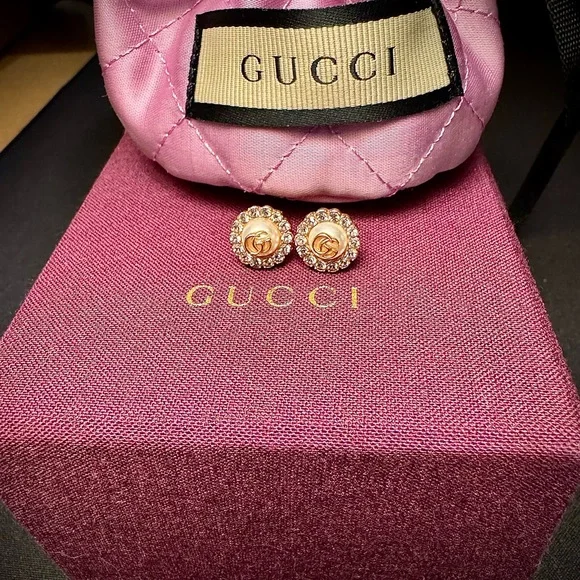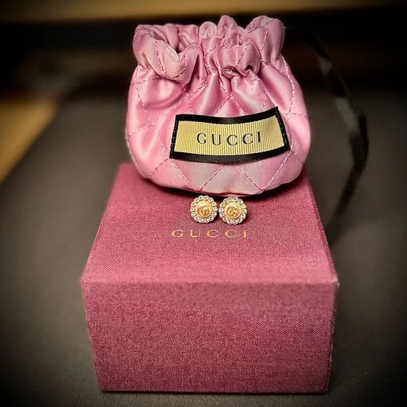 These exquisite earrings showcase a luxurious blend of rose gold and cream tones, crafted with meticulous attention to detail. The earrings feature a sophisticated design that captures light beautifully, making them a standout accessory for any occasion. Their elegant style and iconic logo ensure they are a timeless addition to any jewelry collection