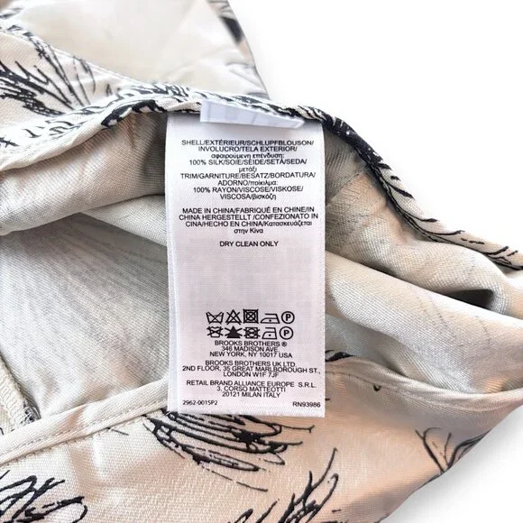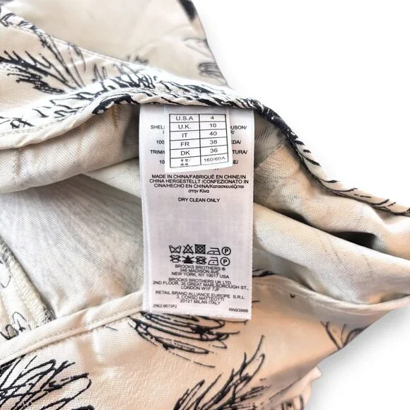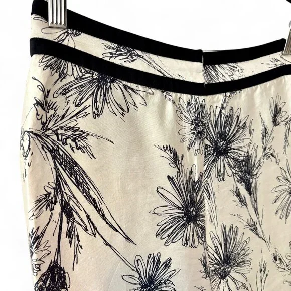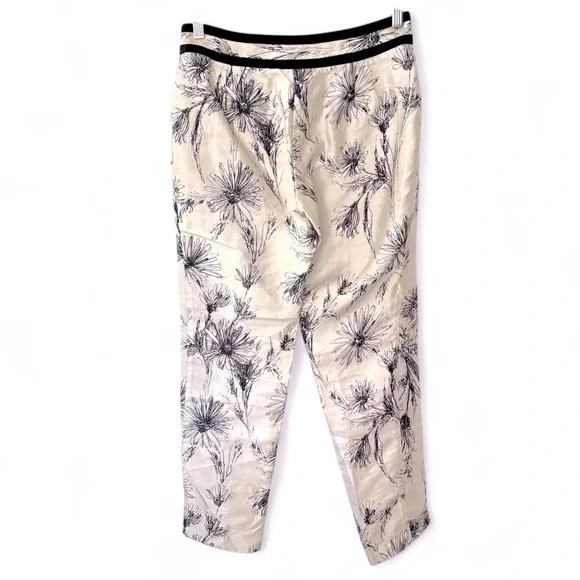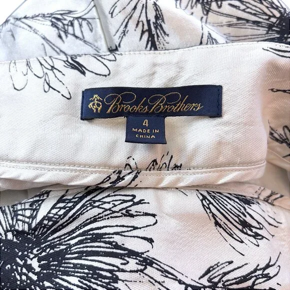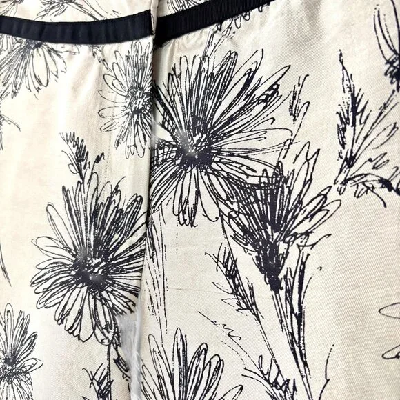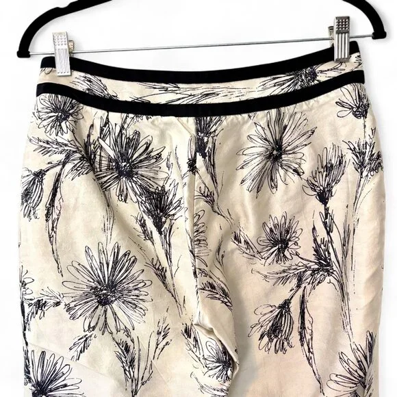Brooks Brothers 100% Silk Sz 4 Ivory & Black Floral Printed Tapered Pant