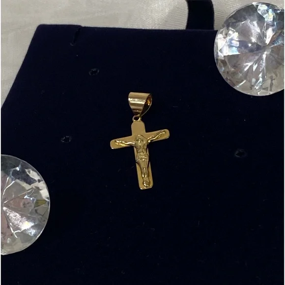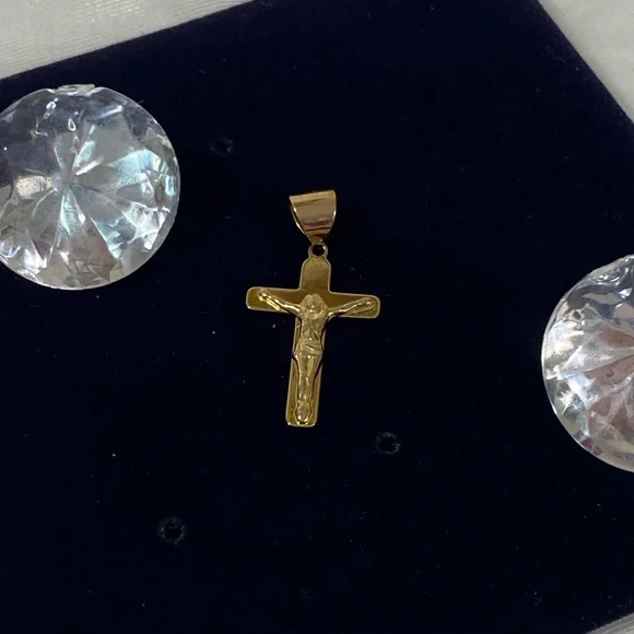 10K REAL Solid GOLD (NOT PLATED OR FILLED) ALWAYS stamped 10k or 417 , which is 41.7% gold purity. Gold lasts FOREVER, does NOT tarnish and is hypoallergenic. NOW is best time to buy GOLD due to hyperinflation. Invest in QUALITY that lasts generations to come. Serves as a thoughtful gift for yourself or someone you love. All pieces will include a jewelry box or jewelry bag. We will happily gift wrap your purchase upon request FREE! Please message us immediately after purchase to assure your item is wrapped before shipment. Details: stamped 10k and Italy . Stunning and shiny Italian gold pendant. Jesus on cross crucifix. 1 inch long. Secure pendant to put on the chain of your choice. I have many chains in my closet . Check it out. Weight is unknown. This piece is solid not hollow. Measures: 1 inchMade in: ITALYCheck out my other 14k GOLD jewelry listings! Bundle items for a discount and pay shipping once. Feel free to ask any questions you may have. Buy with confidence. All pieces are guaranteed authentic. Check out our 5 STAR ratings from satisfied customers.