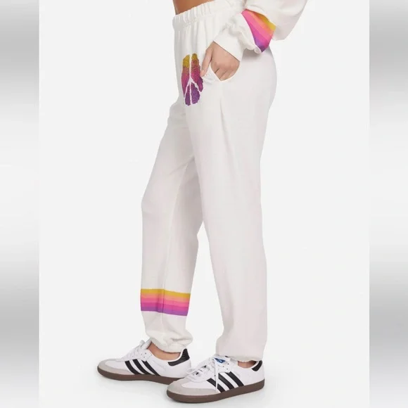 Brand NewRetails For $158Color Milk• MADE in LOS ANGELES• 100% Premium Cotton• Machine Wash Cold, Lay Flat to Dry• Ultra Soft French Terry Fabric• Screen Print Graphics Throughout• Elasticized Leg Openings• Elasticized Waistband• Side Pockets• OversizedThis has a few tiny spots on the frontside. See the last picture. It’s barely noticeable, it might wash out. The price significantly reflects this.The matching top is in anotherr listing :)