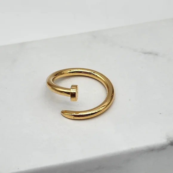 18K Yellow Gold Nail Ring Size 7 Saudi Gold Au750 NEW Lightweight Spiral New without tag lightweight hollow approx 2.4 to 2.5g
