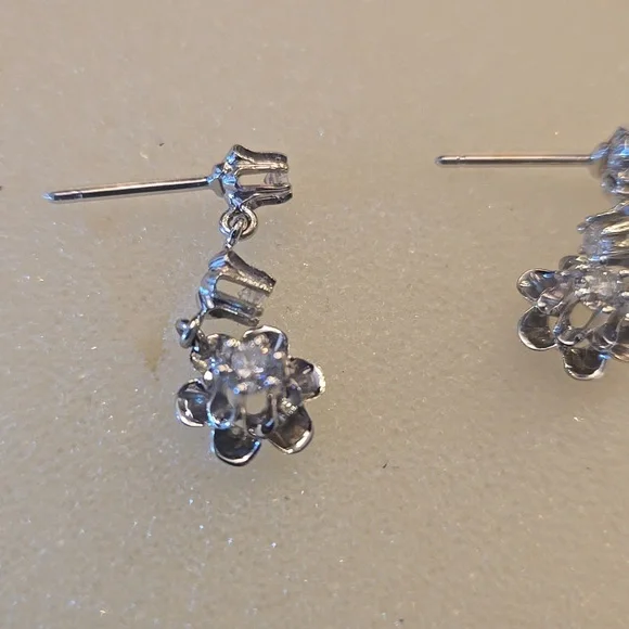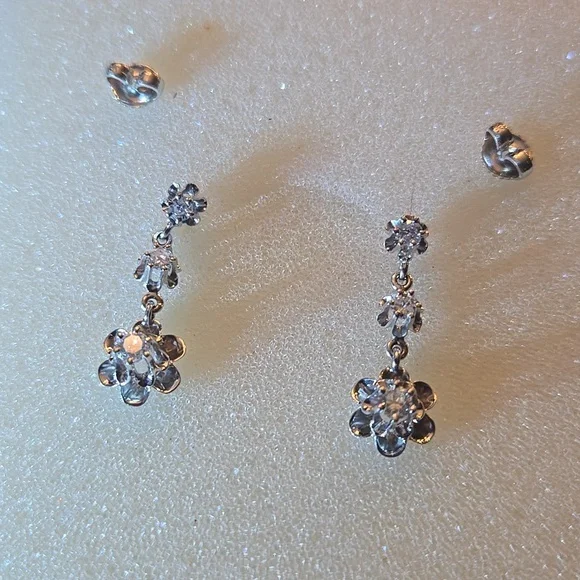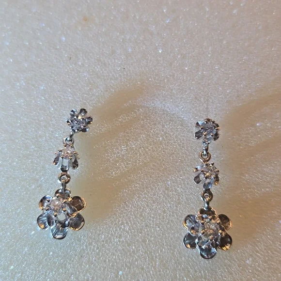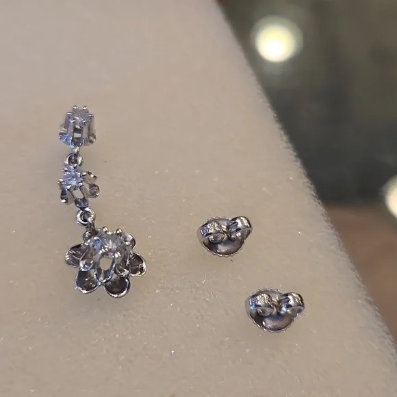 14KT Whitegold diamond earrings set with 3 diamonds.Each dangle about an inch length. The post measure a half inch