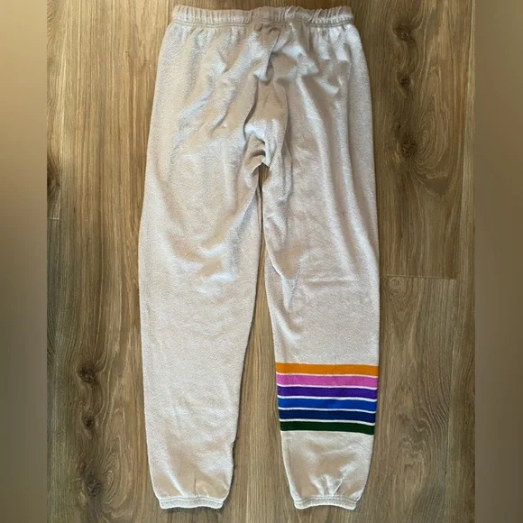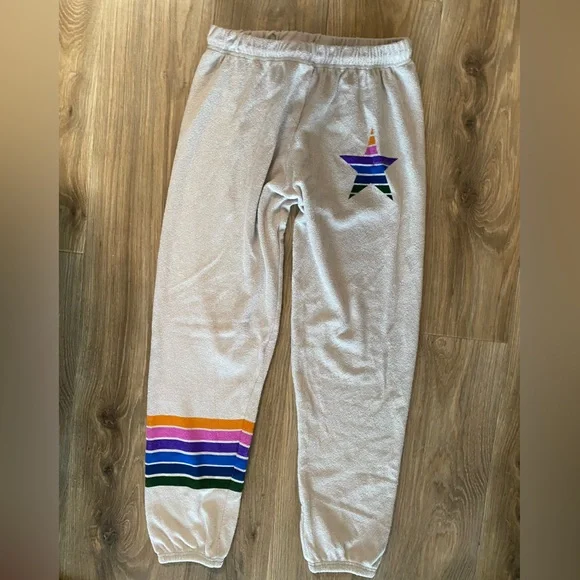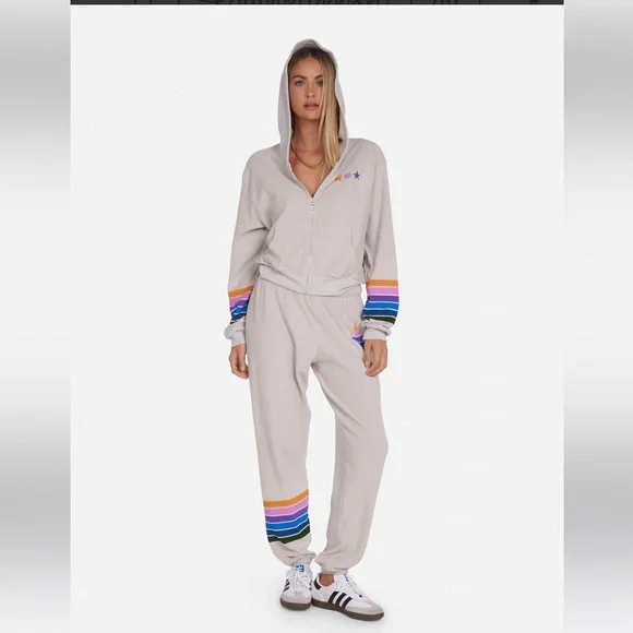 Brand NewRetails for $154• MADE in LOS ANGELES• 100% Premium Cotton• Machine Wash Cold, Lay Flat to Dry• Ultra Soft French Terry Fabric• Screen Print Graphics Throughout• Elasticized Leg Opening• Elasticized Waistband• Oversized/ Boyfriend FitThese are sooo nice, the fabric is amazing. I highly recommend, I had to keep a pair!