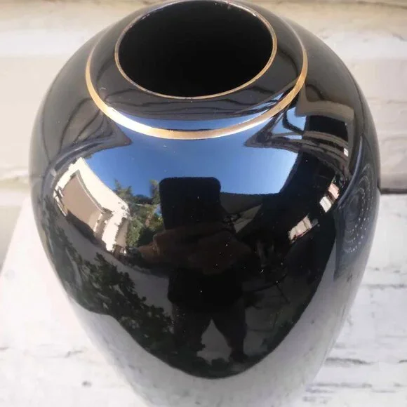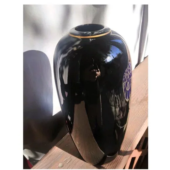 Elegant Vintage Shibata Japanese Lustrous Black w/Gold Trim Tall Porcelain VaseThis is a gorgeous Elegant Vintage Shibata Japanese Lustrous Black w/Gold Trim Tall Porcelain Vase....